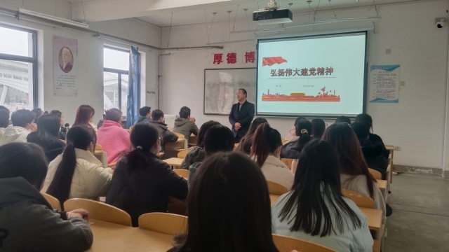 为进一步深入学习贯彻落实党的二十大精神,让党的二十大精神引领广大师生在前进道路上知行合一,英国365集团公司党委继续开展领导干部讲党课活动。2023年3月24日下午,学院党委副书记伍聪以《学习党的二十大精神,弘扬伟大建党精神》为题讲授专题党课,学生党员参加学习。