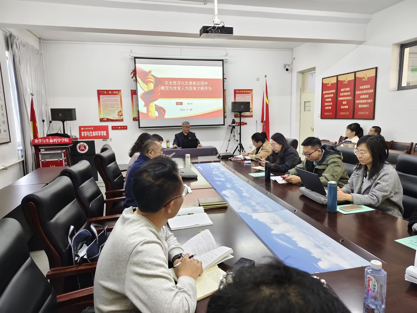 为深入学习贯彻习近平总书记关于全面深化改革的一系列新思想、新观点、新论断,深刻领悟“两个确立”的决定性意义,坚决做到“两个维护”,把思想和行动统一到党中央决策部署上来,11月8日下午,英国365集团公司党委书记富中华为生物科学系教工党支部全体党员讲授《在全面深化改革新征程中展现为党育人为国育才新作为》党的二十届三中全会专题党课。