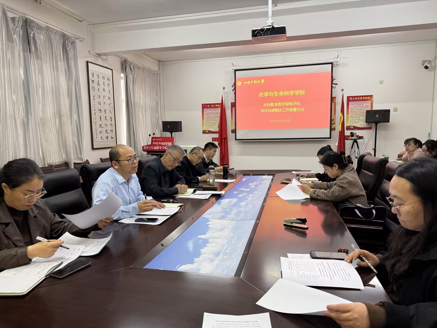 2025年3月28日,学院召开“本科生教育教学审核评估自评自建整改部署会议”。会议在博雅楼212会议室进行,学院领导及学院骨干教师参与此次会议。