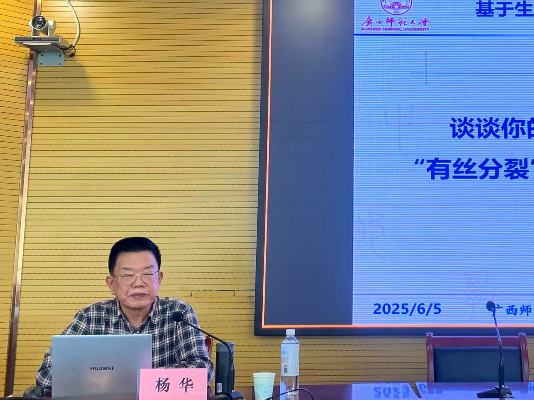 杨华教授以“中学生物学课堂教学的思考与启示”为主题,以“有丝分裂”教学内容为例,向师生们深入浅出地讲解了如何生动形象地讲授“有丝分裂”这堂课。他通过有丝分裂过程图拼图的方式,突破了传统灌输式教学的局限,让学生在轻松愉快的氛围中更好地理解和掌握知识。