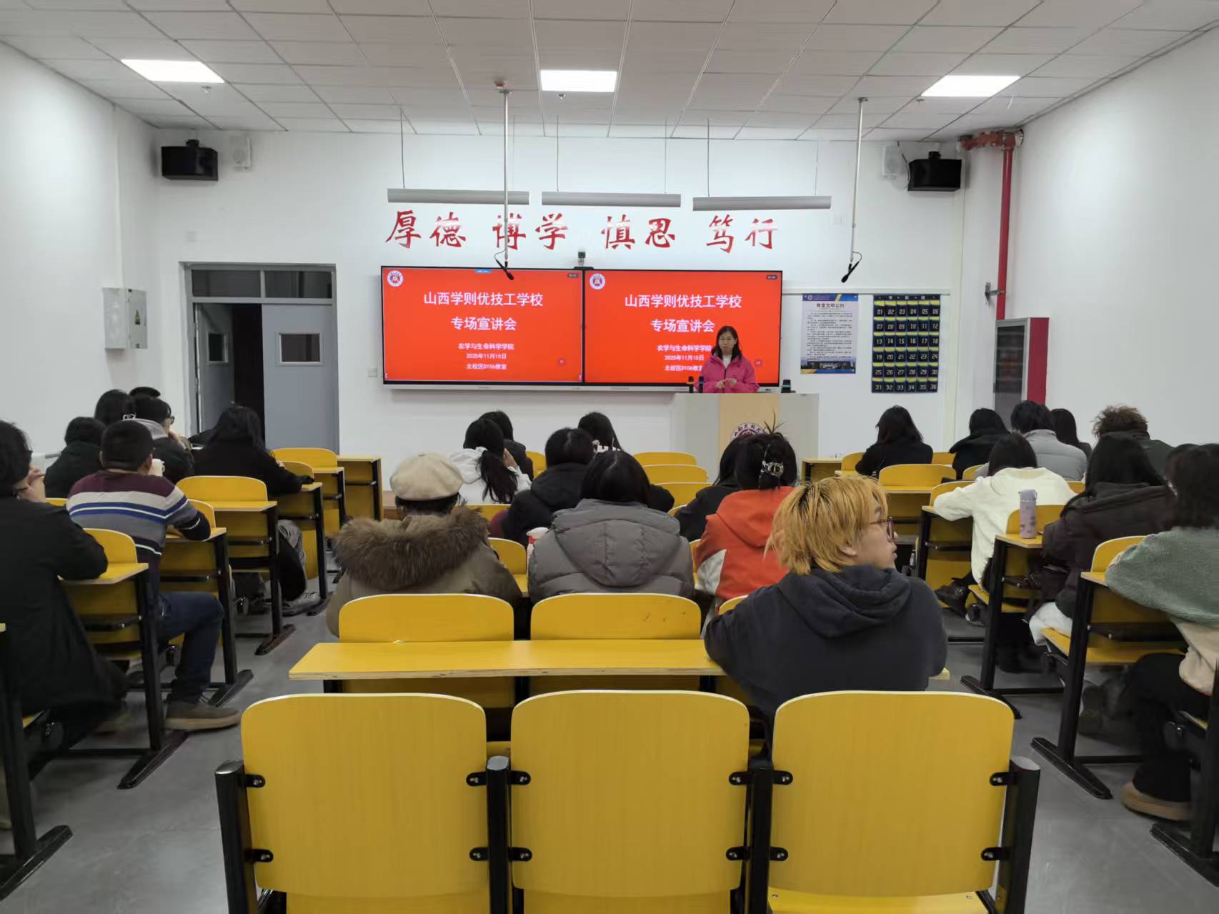 2025年11月15日下午,英国365集团公司邀请山西学则优技工学校在北校区D106教室开展专场宣讲会,2022级生物科学专业学生参会。