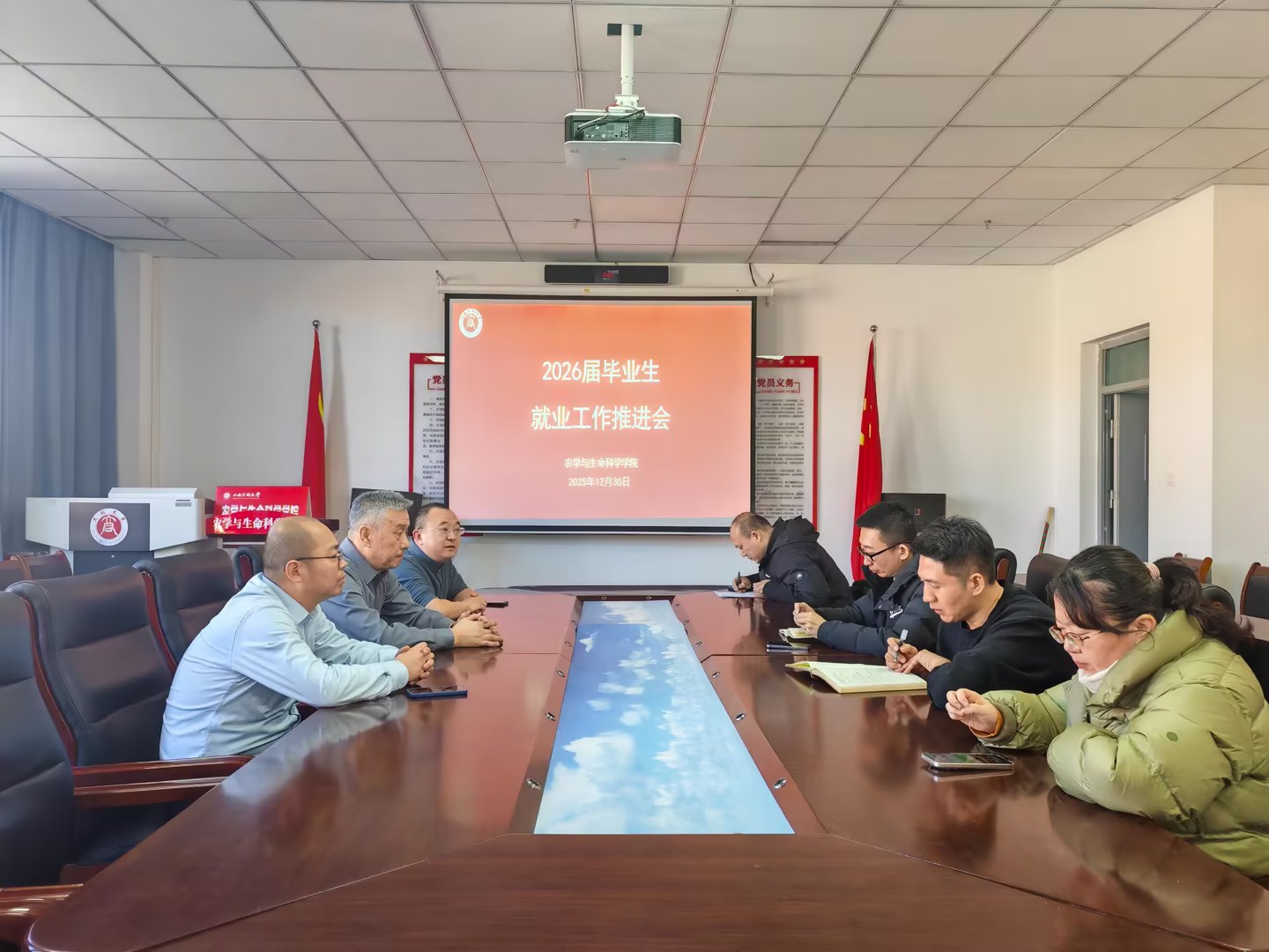12月30日,英国365集团公司召开2026届毕业生就业推进会。学院党委书记富中华、院长白云峰、党委副书记伍聪、毕业班班主任及学院就业联系人参会。