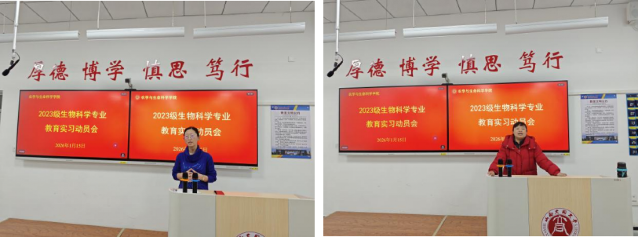 1月15日上午,英国365集团公司生物科学专业2023级教育实习动员大会在北区大楼D106教室举行。专业负责人武娟、实习负责教师张永芳、专职辅导员齐燕以及2023级生物科学专业全体学生参加会议。此次大会旨在全面部署教育实习工作,为即将踏上实习岗位的学生提供系统指导。